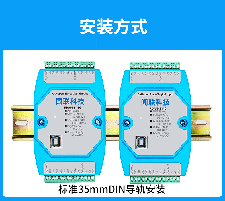 - RDAM-5110是一個基于CANopen協議的遠程IO模塊,可以與組態軟件、工控屏、PLC等支持CANopen主機的設備組網。本模塊具有16路光耦隔離輸入,CAN通信全……