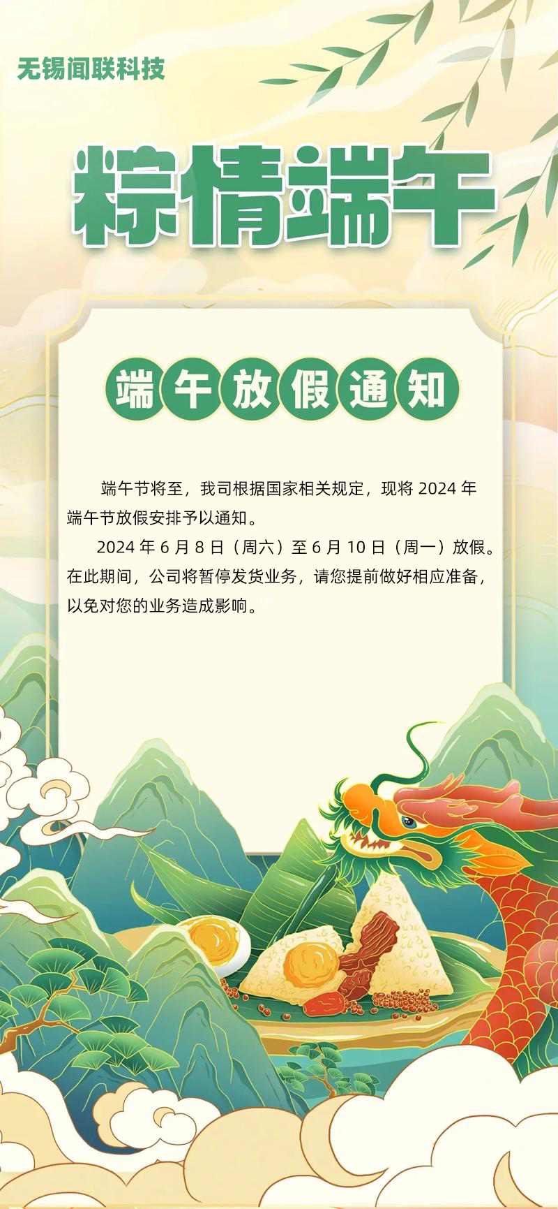 端午節將至,我司根據國家相關規定,現將 2024 年端午節放假安排予以通知。